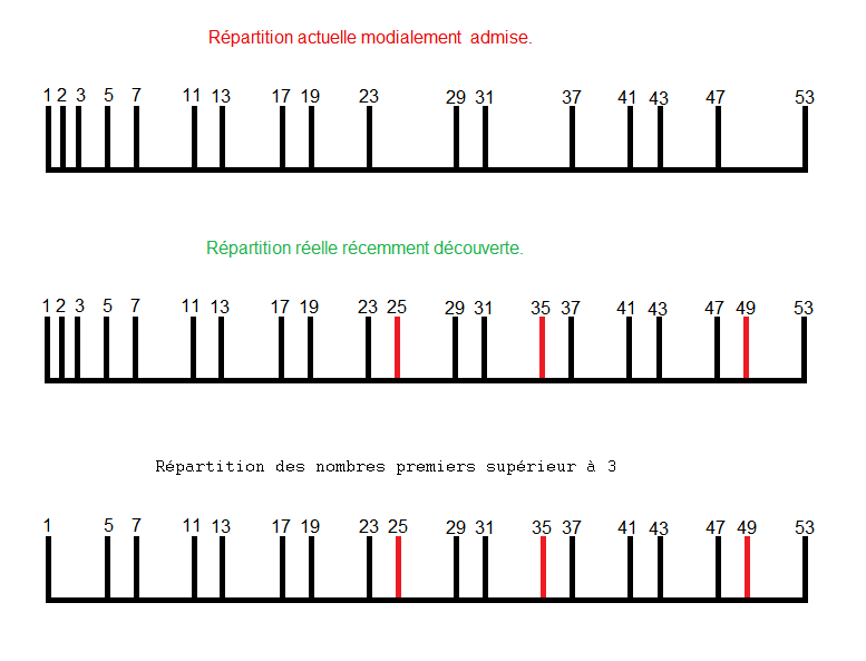 Alors ! pourquoi ne pas essayer de trouver la réponse à sa question initiale » définir le mode de distribution des nombres premiers » j’étais bon en mathématique dans ma jeunesse, j’ai peut-être ma chance, pour la résolution de ce problème, qui restait un mystère, pour les mathématiciens.